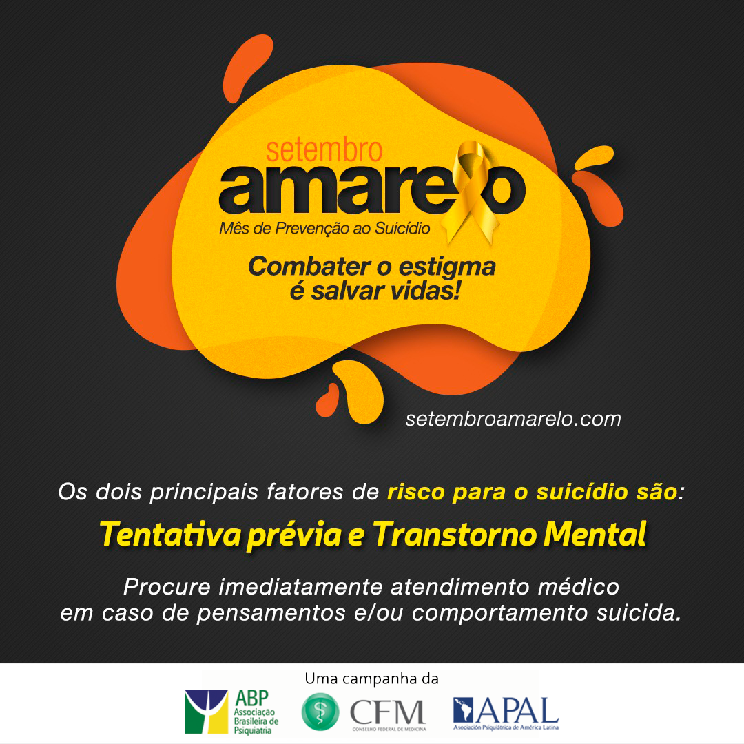 Desde 2014, a Associação Brasileira de Psiquiatria – ABP, em parceria com o Conselho Federal de Medicina – CFM, organiza nacionalmente o Setembro Amarelo. O dia 10 deste mês é, oficialmente, o Dia Mundial de Prevenção ao Suicídio, mas a campanha acontece durante todo o ano.